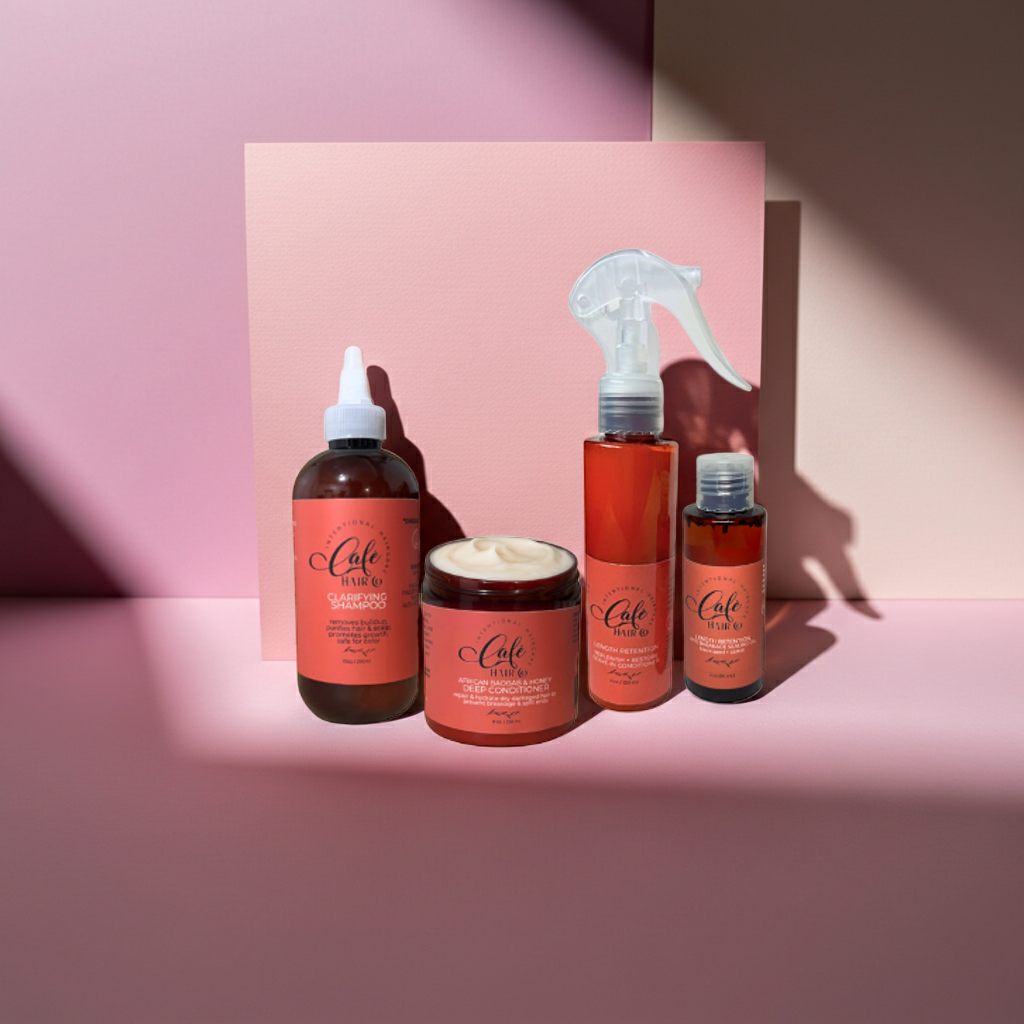 Café Hair Co. is a Black-owned natural hair care brand focused on length retention, moisture balance, and breakage prevention. Our products are designed to help you grow and retain healthy hair—especially if you wear protective styles, struggle with dryness, or feel overwhelmed by complicated routines.